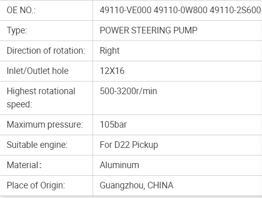 • Product ID:49110-2S600 49110-5T100 49110-30N00 Power Steering Pump For D22 Pickup TD25