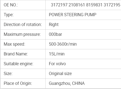• Product ID:3172197 2108161 8159831 3172195 3172197 Hydraulic Steering Pump For Volvo